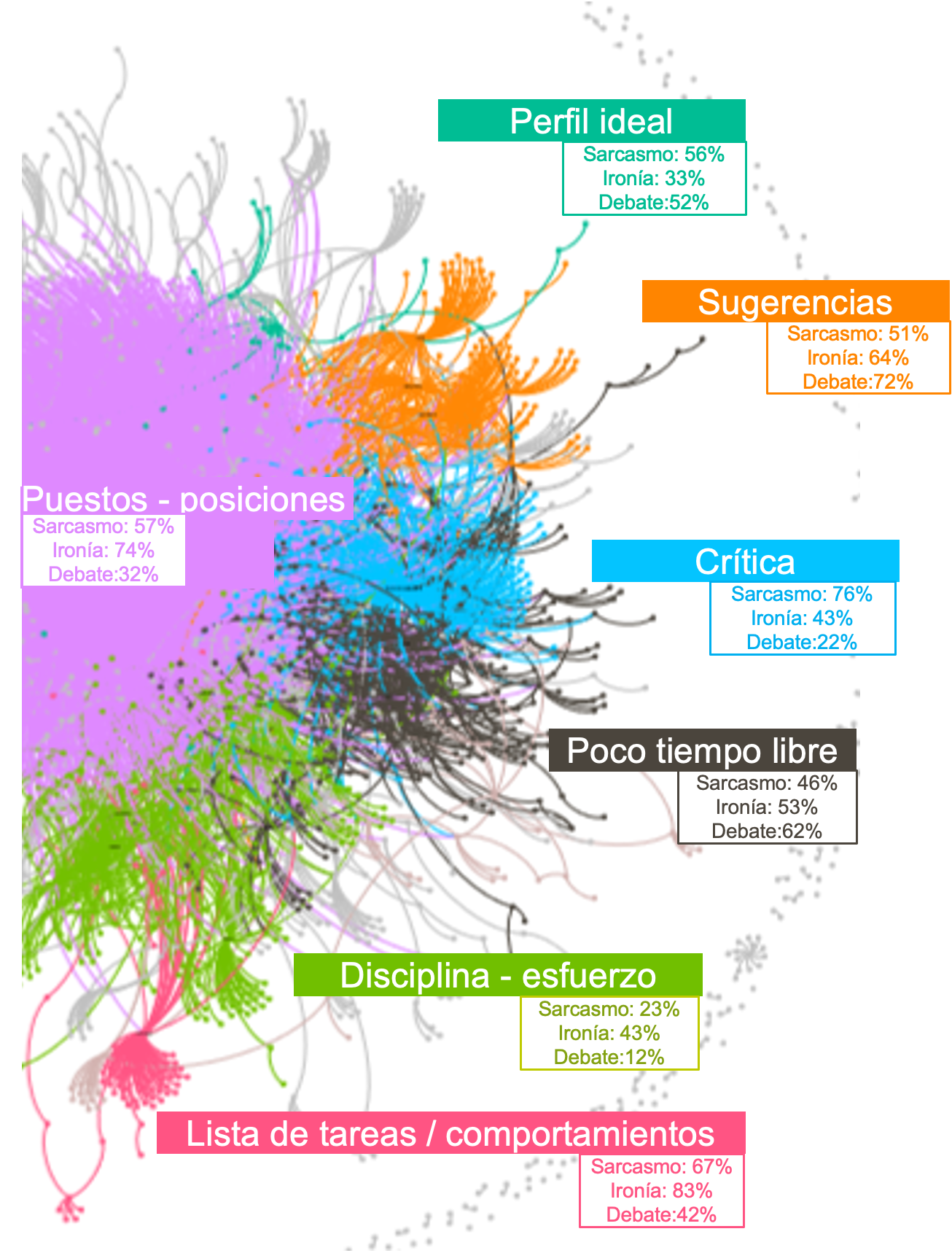 - Lista de tareas y comportamientos: El 48% de los casos, la conversación gravita alrededor de "recetas de éxito" para el liderazgo, listas de tareas para ser líder, formas de ver el mundo, rituales asociados a éxito etc.